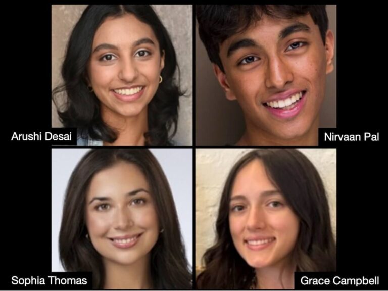 We are thrilled to announce this year's recipients of our two memorial scholarships. Arushi Desai received $1,000 as the winner of the Theresa Lebreglio Scholarship. Sophia Thomas received $500 as the runner-up. The Sarah Katz Award of $1,000 went to Nirvaan Pal. Runner-up Grace Campbell received $500.